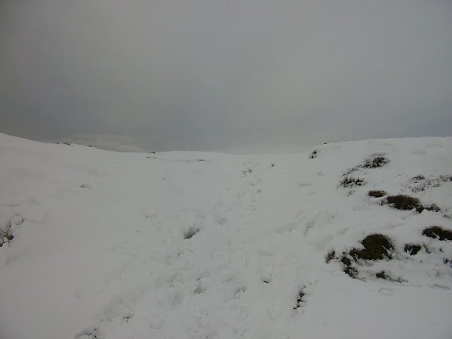 Following some foot steps in the snow, this is crazy! It was bad last time before the snow cover, these peat bogs are deep, and in some cases you could see a brown pool at the base of a depression in the snow, hmm, this is going to be tricky, and pretty dangerous!! I hope the route I've pre-drawn and loaded onto the GPS is going to be OK...